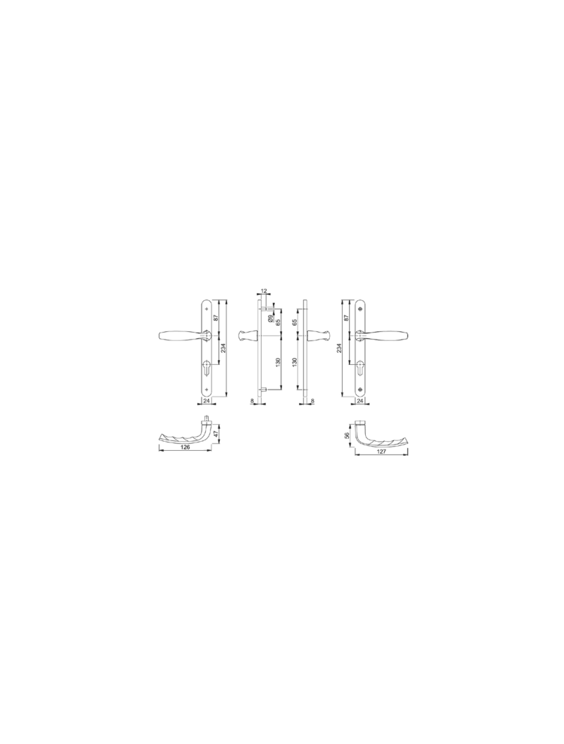 Double béquille sur plaque blanche pour ouvrant 70 mm