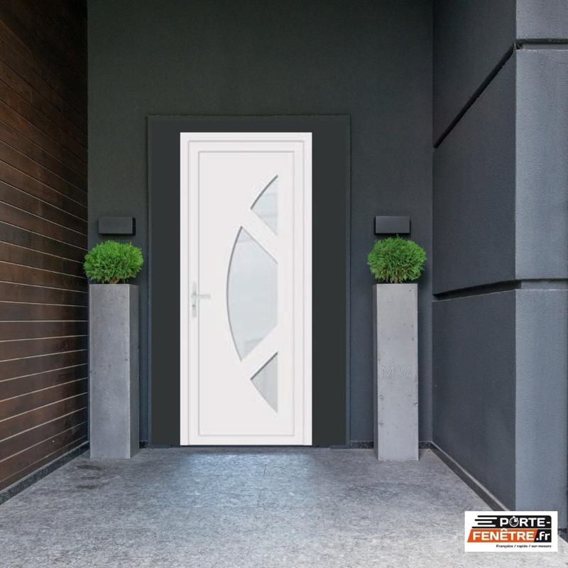 Porte d''entrée PVC à la française de couleur blanche Ral 9010.
