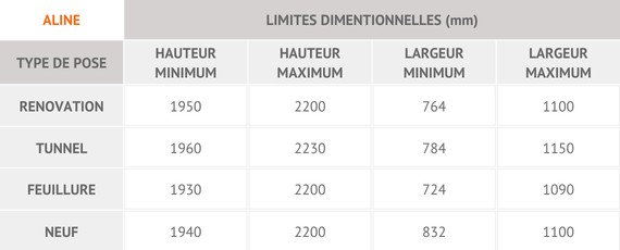 Côtes fabrication -5mm par côté par rapport aux côtes tableau pour une pose conforme au DTU 36.5.